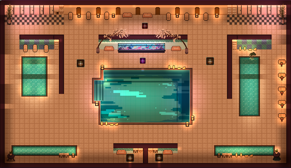 You've clocked off work with your co-workers at the university and, for whatever reason, went and bought some state of the art masking tape guns from the local DIY shop. There's a spa and swimming pool right next door to the shop so you decide to head in and go crazy with the masking tape. The security turrets aren't too happy about the breaking and entering though.